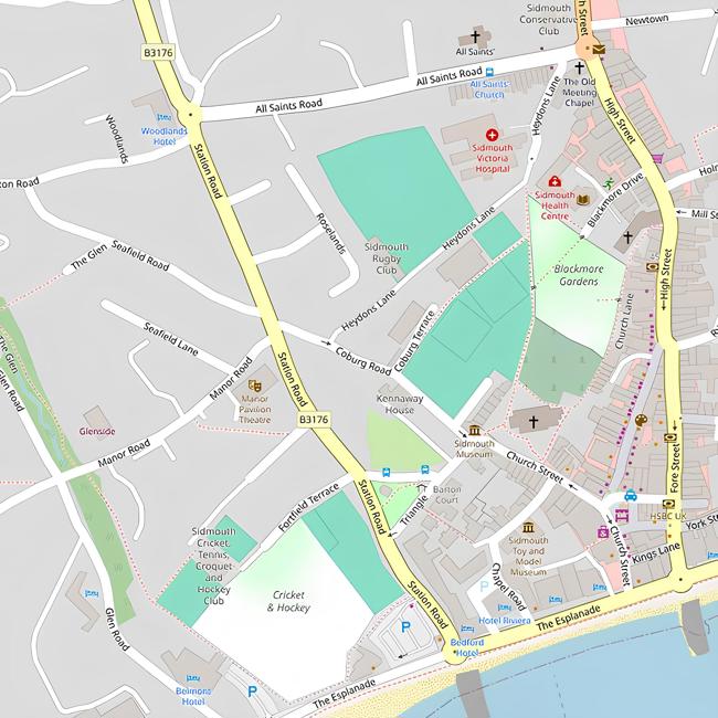 We are located conveniently close to Sidmouth Triangle, a main bus stop, with connections to Exeter, Honiton, Exmouth, Ottery, Whimple, Beer and Seaton.